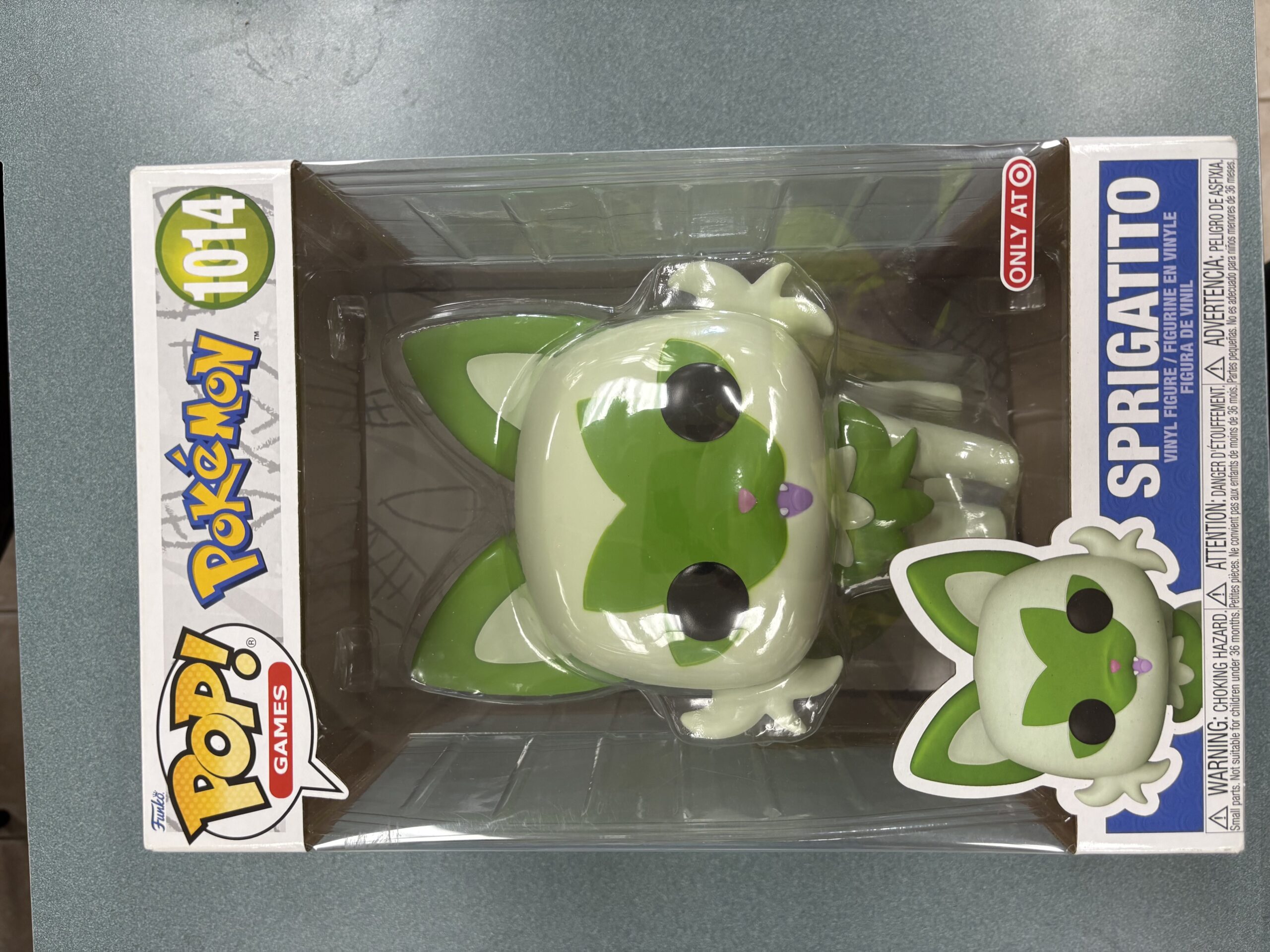 Giant Funko pop of a Pokémon, Sprigatito. See photos for how item looks