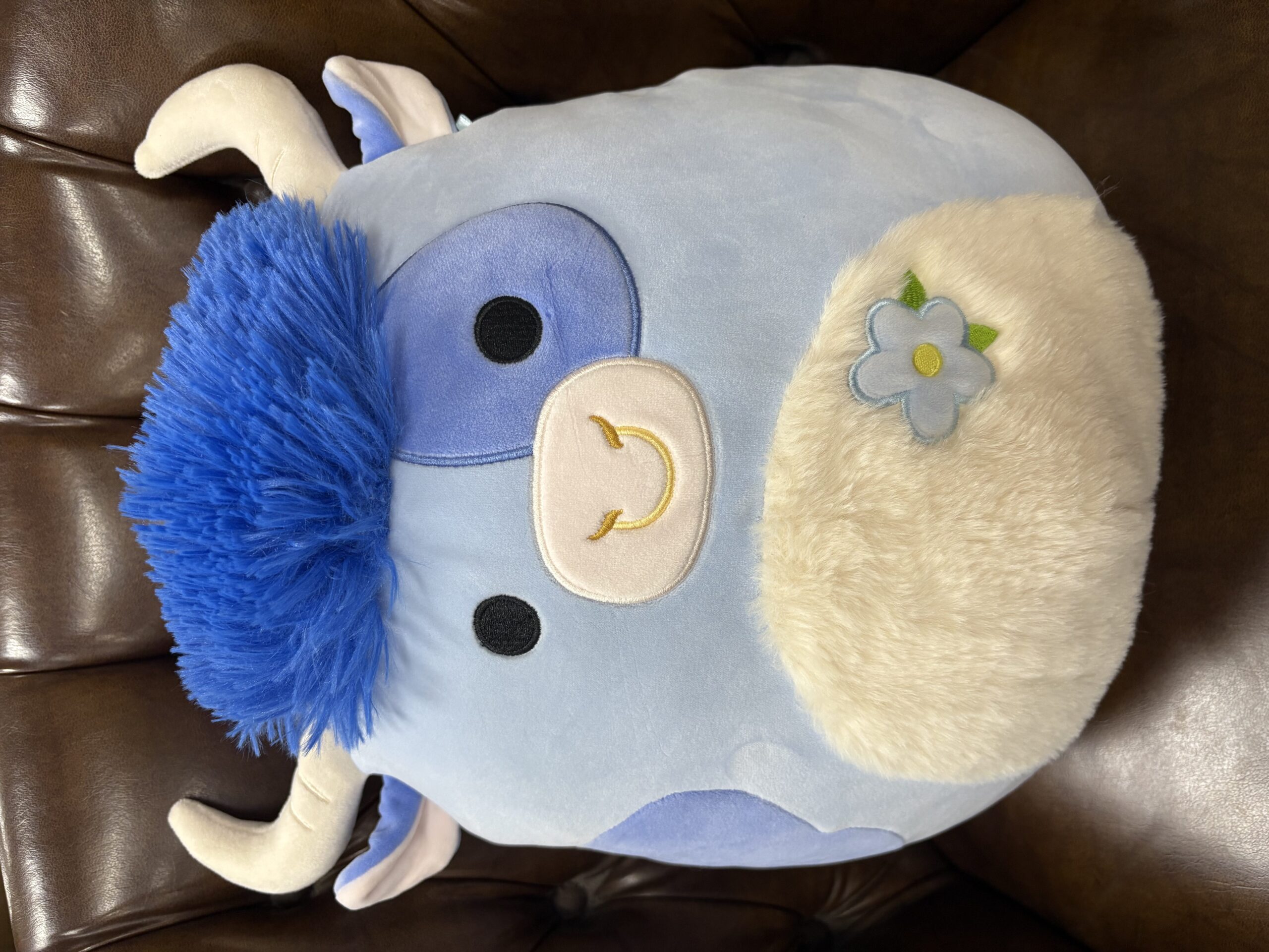 Very soft, 12 inch, bull squishmallow plushie for kids and adults. See photos for how item looks when purchased, thanks!